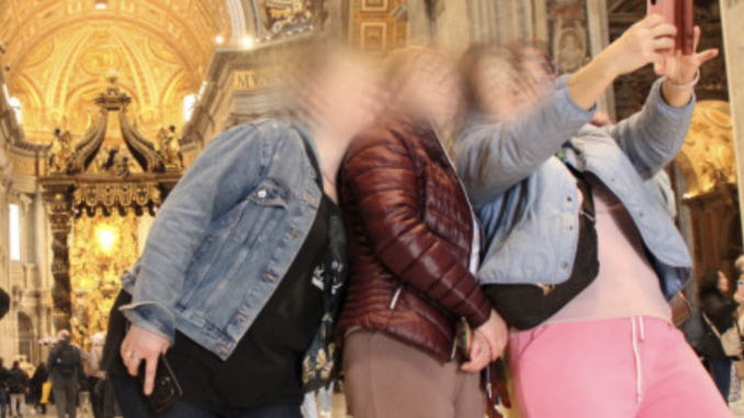 Com’è la Basilica di San Pietro vista con gli occhi dei visitatori? Abbiamo trascorso una mattina nella chiesa più importante della Chiesa cattolica: dal 1° marzo c’è un percorso riservato agli oranti, ma tutto, anche la Messa, è immerso nel vociare confuso dei visitatori che non sanno cos’è il silenzio e il sacro. E che passeggiano come se fossero di fronte a un’attrazione turistica qualsiasi. Ecco cosa abbiamo visto.